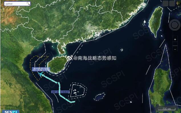 据@南海战略态势感知消息,3月8日上午7时,美空军1架RC-135W电子侦察机从冲绳嘉手纳起飞,先后沿着中国广东、海南岛、西沙群岛海岸线进行抵近侦察,一度深入到北部湾空域,后在海南与西沙之间折返作业。飞行至西沙群岛西南空域时,距离领海基线仅28.34海里。
