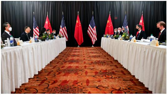 当地时间3月18日,中共中央政治局委员、中央外事工作委员会办公室主任杨洁篪、国务委员兼外长王毅在安克雷奇同美国国务卿布林肯、总统国家安全事务助理沙利文举行中美高层战略对话。