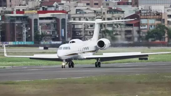 多德等人抵台,湾流5型专机14日下午降落台湾松山机场。图自台湾联合新闻网