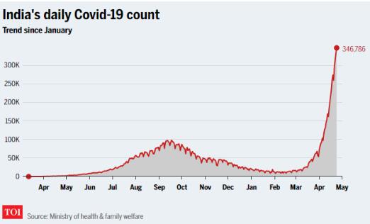 印度已连续第三天新增报告的感染病例超过30万例,并多次突破全球每日新增病例的最高记录。面临飙升的新冠确诊病例,印度的医院不堪重负,纷纷向各方乞求氧气供应。据报道,印度政府已部署了军用飞机和火车,从印度的偏远角落以及包括新加坡在内的海外为德里运送氧气。
