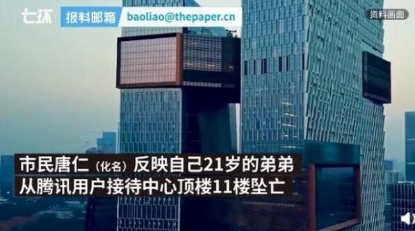 腾讯对外回应: 8月15日(星期六)17:53分,嘉达研发大楼A座发生一起坠楼事件,大厦保安发现后立即报警,坠楼者经现场抢救无效死亡。事发后,警方第一时间出警现场取证并展开调查。当天非工作日,租用该大厦一楼的腾讯用户接待中心当天未对外服务,腾讯公司员工未与坠楼者有过交流接触。经查证,坠楼者的社交账号于8月12日由于被人举报色情骚扰,平台根据用户举报证据和网络平台管理规范,予以72小时短期封号,于8月15日到期后用户即可自助解封,该信息在登录页面已有明确提示。腾讯已将用户相关违规信息提交给公安机关。经公安机