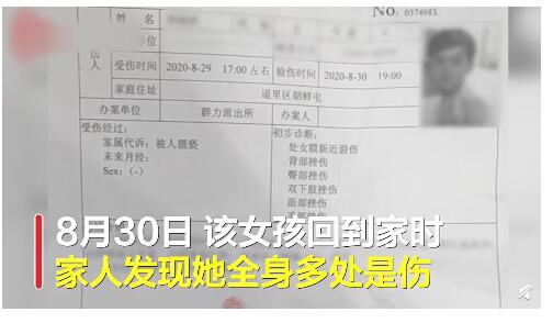 随后,周家人紧急将妍妍送往医院救治。据哈尔滨市公安医院的伤情诊断书显示,妍妍下身新近裂伤,背部挫伤,臀部挫伤,双下肢挫伤,面部挫伤,手部挫伤等。