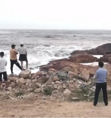 网曝视频显示,有两人倒在地上浑身湿透,相关部门正在救援。9月2日,洞头相关工作人员表示,“目前还在救援中。”