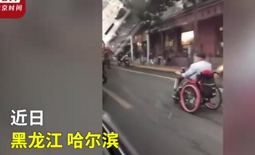 上飙车。旁边车上乘客说:“轮椅开得比我们都快”。据北京时间报道,9月2日,哈尔滨交警支队工作人员表示,电动轮椅可以走人行道,但开太快肯定不行。