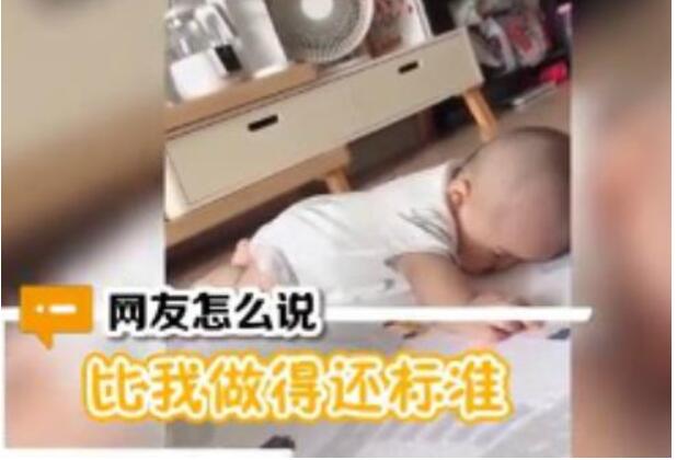 萌力十足!宝宝做平板支撑5秒倒下 白胖胳膊支撑胖胖身体