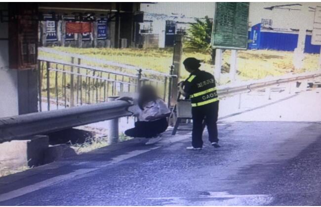 工作人员意识到该女子遇到危险,立即打开对讲机呼叫监控员说明情况,一边不动声色地跟男司机说:“不好意思,栏杆机出现故障无法抬杆,麻烦稍等一下。”