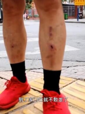 云南昆明一盲道存在大量安全隐患,盲人出行300米行走25分钟遇30多“陷阱”导致一腿伤痕。