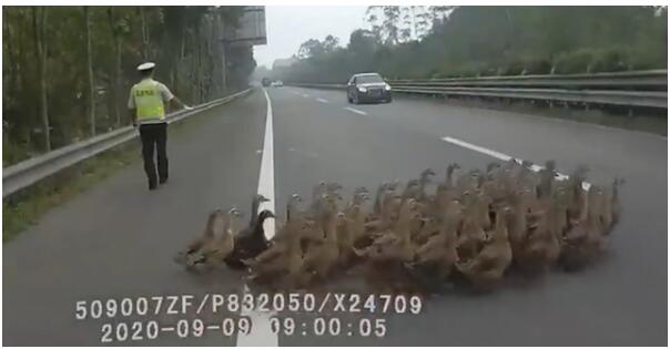 原标题:鸭群大摇大摆上高速,交警赶都赶不走,评论区亮了