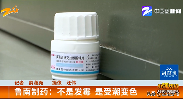 鲁网•泰山财经9月11日讯 患者称服用鲁南制药生产的“发霉”药物后呕吐,该药片尚处于保质期内。对此,鲁南制药方面回应称,或是药物受潮导致变色,并非发霉。据浙江教科频道《小强热线》栏目报道,刘女士11岁的女儿发烧到杭州市大江东医院诊断为急性上呼吸道感染。医生给孩子开了3种药,其中有一款是鲁南制药生产的阿莫西林克拉维酸钾片。鲁南贝特制药生产的阿莫西林克拉维酸钾片刘女士称:“孩子吃了这个阿莫西林大概10分钟左右,她就开始吐。第二天早上我又让她吃了这个药,吃了之后她又
