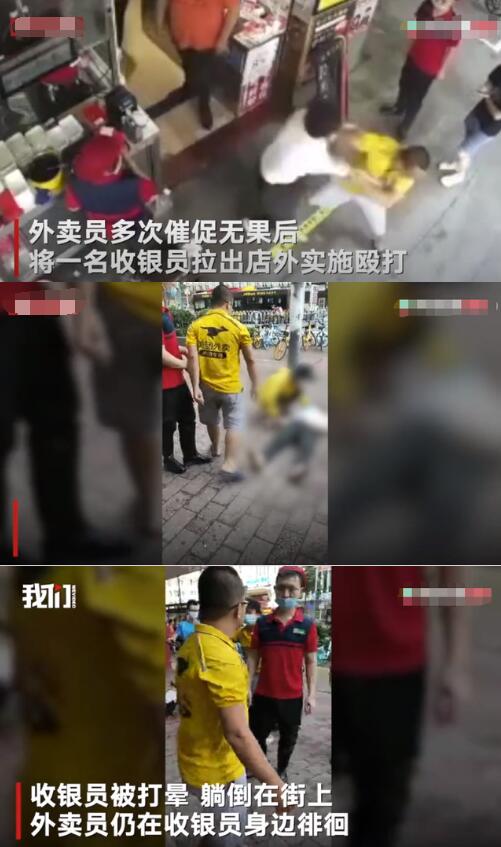 9月13日,广州市海珠区江南西街道一肠粉店内,一名外卖员与因嫌餐厅配餐过慢,与店铺员工发生口角纠纷。外卖员多次催促无果,将一名收银员拉出店外连续殴打,收银员被打晕,躺倒