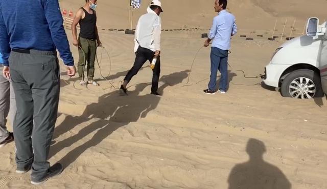 据悉,在8月底的时候,一名游客自驾到敦煌地区旅游。汽车开在去青海的路段时,看到远处停放着一辆车。这名游客将车开近查看,发现那辆汽车陷入了沙地里,正等待救援。出于好心,这名游客就从后备箱里取出了绳索,打算将陷于沙地的车给帮忙拉出来。万万没想到,这时突然走出来一个穿白衣戴白帽子的男子。