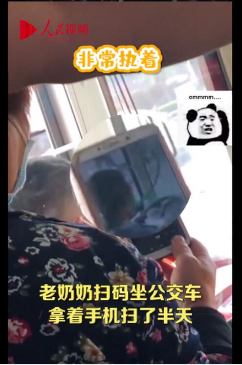 原标题:可爱的误会!老奶奶坐公交对着司机的头扫码非常执着,网友:真你扫我