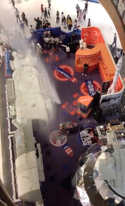 商场表演冷烟花被消防水炮浇灭,这消防系统可真给力!