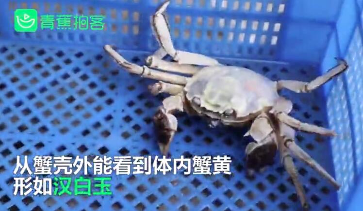 吃货不淡定了!白色大闸蟹隔着壳能看到蟹黄 疑基因问题不影响食用