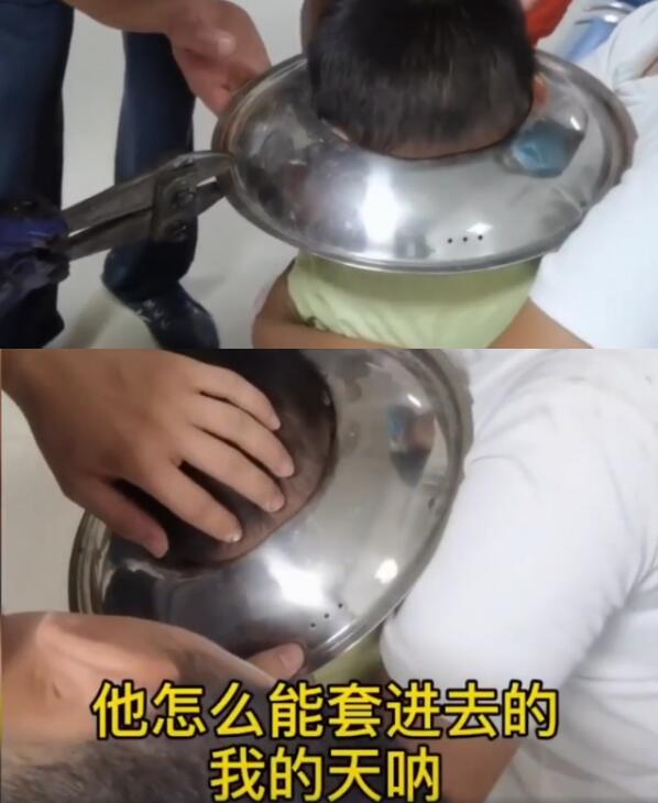 原标题:男孩脑袋卡进锅盖取不下来,网友:很心疼,但忍不住笑了