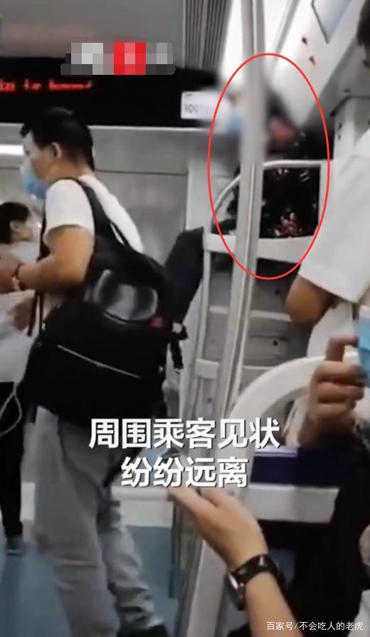 迷惑操作!重庆一老太爬上地铁车厢行李架上蹭坐