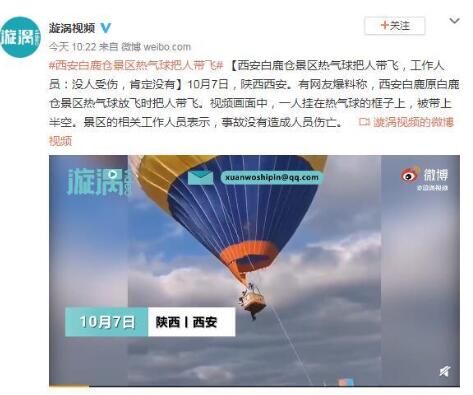 原标题:西安白鹿仓景区热气球把人带飞,工作人员:没人受伤,肯定没有