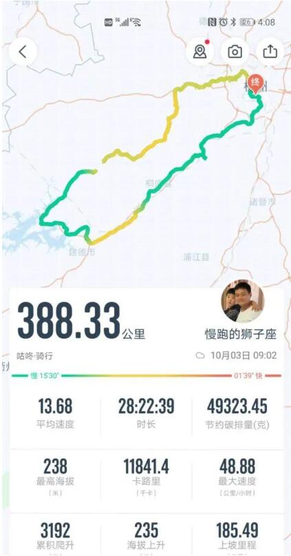 刚刚,国过去的这个长假,你是在人从众的景区里排队?还是经历了高速公路上的堵车?杭州江南实验学校初二的学生李铭希和老爸李彪一起,5天时间,环杭骑行395公里(注:轨迹上因为修车忘记开导航,漏了7公里),老爸李彪说,这是他和儿子的第一次长距离骑行挑战,也是儿子出生后,第一次父子俩独处了整整五天。回家后,这个跑得了马拉松的老爸在家躺了一天,他说:“和儿子一起,一辈子有一次这样的经历很值!”带上一大包作业去骑行老爸李彪是个马拉松爱好者,至今已经跑了数不清的半程马拉松,平时每周的跑量在50-