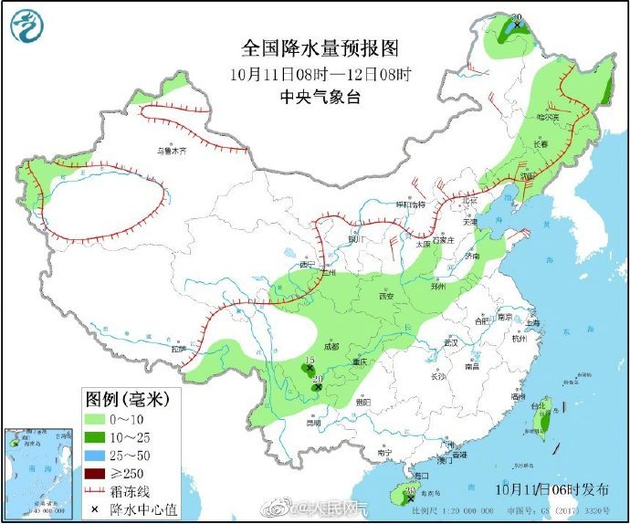 10月11日至14日,冷空气频繁影响我国中东部地区,虽然强度整体不强,但仍将会给我国北方带来明显的大风降温天气。此外,南海低压已于今天凌晨加强为今年第15号台风“莲花”,受“莲花”以及冷空气共同影响,我国南海海域将有大风,海南南部地区有强降雨,当地需注意防范。