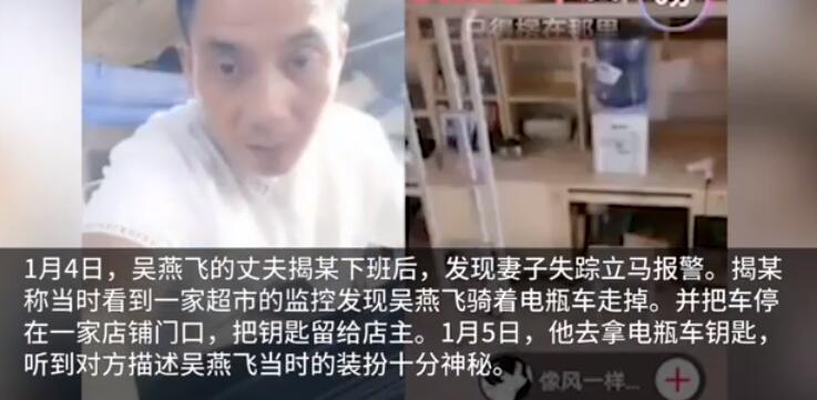 10月9日,江西上饶。吴燕飞失联至今已9个月,留下丈夫和4个孩子。据其老公,通过监控失联当天她浑身只露一双眼睛,把电动车钥匙委托给一店主。目前她手机显示空号。