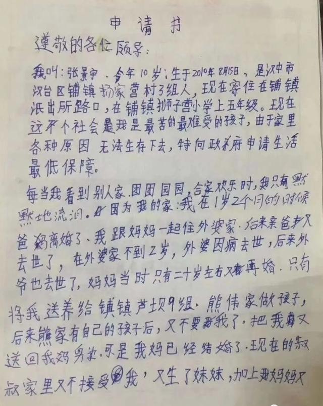 最近一封10岁五年级小学生的求助信火了,随着舆论的不断发酵,很多人对此表达强烈关注,甚至得到了人民日报、央视新闻等权威媒体的发声。之所以能获得如此高的关注,与小男孩所描述的悲惨经历有较大关系。通过求助信所传递的信息,大家看了之后都感觉太难受了,孩子太可怜了。如求助信所说,孩子小时候父亲、外公、外婆相继去世,母亲因改嫁不得不将他送养,而送养那家人后来又有了自己的孩子,于是他又回到母亲重新组成的家中。然而男方并不接受这个孩子,于是只能寄养在外,生活得不到有效保障,一天3顿只能在学校吃一顿免费的午餐,身高和体重