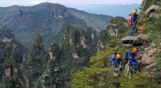 实际行动呼吁广大游客关爱世界自然遗产,共同保护生态环境。原标题:湖南张家界:清洁工悬崖绝壁捡垃圾