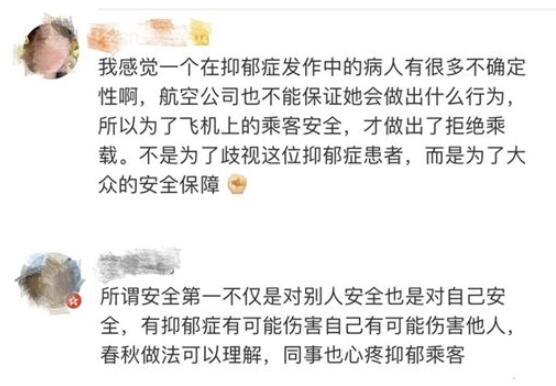 也有网友评论,抑郁症患者不应被拒绝登机。