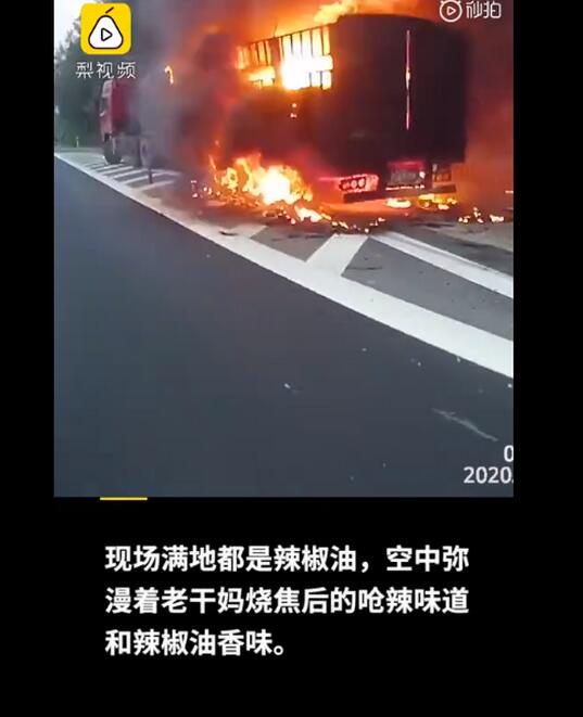 原标题:2600件老干妈高速上被烧,空气中全是呛辣椒味,网友:突然流口水了