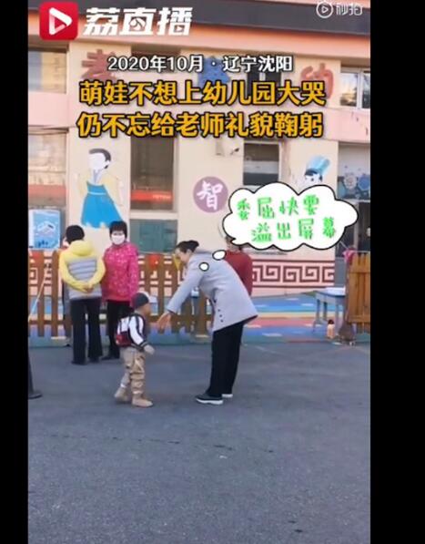 :宝宝上幼儿园边哭边鞠躬,悲伤而又不失礼貌 网友:委屈都要溢出屏幕了 很赞哦! ()