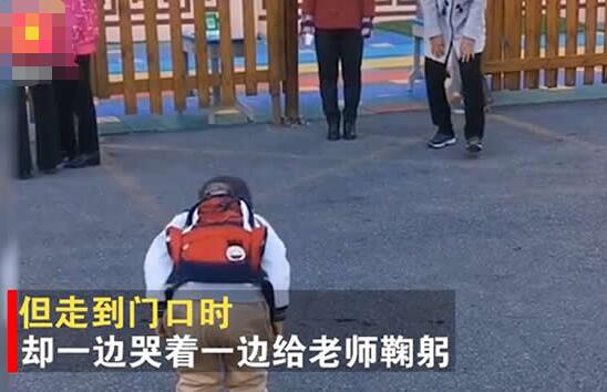 原标题:宝宝上幼儿园边哭边鞠躬 网友:悲伤而不失礼貌