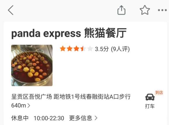 报道称,从消费者拍摄的照片来看,这家餐厅的标志与美国的Panda Express一致。美团信息显示,该餐厅入驻地点为昆明呈贡新区的吾悦广场。但在在大众点评网站,“Panda Express熊猫餐厅”只有寥寥数条评论,评分3.5。