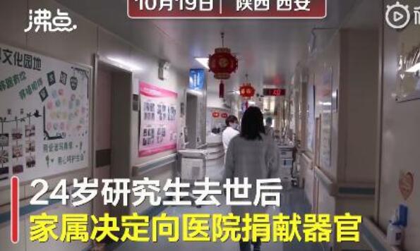 【24岁研究生去世捐献器官救5人】西安交大研二学生牛忠楠被诊断为脑出血,10月9日不幸离世,家属决定捐献器官延续孩子生命。他捐献的一个肝脏、两个肾脏、两片眼角膜,已使3个濒危患者获得重生,目前两片眼角膜也分别找到了受体,将为两名眼病患者送去光明。致敬!图源:视频截图原标题:24岁研究生去世捐献器官救5人 一路走好!