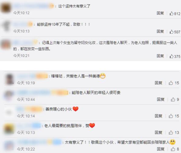 原标题:小伙坚持10年陪乡村老人聊天拍照,网友:太有意义了!