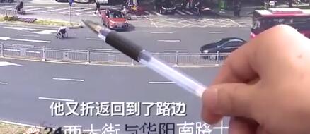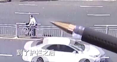 刘翔附体?大爷坐轮椅横穿马路翻护栏
