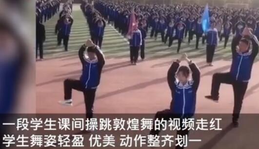 生课间操跳敦煌舞的视频走红。学生舞姿轻盈、优美,动作整齐划一。