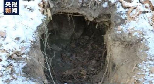 黑龙江太平沟国家级自然保护区管理局 苏全勇:在山顶也发现了虎的卧迹,我顺着老虎把熊拽下来的痕迹,往上走去看了一下他们的打斗现场。走了一段距离后,我就发现有一个熊的地仓。