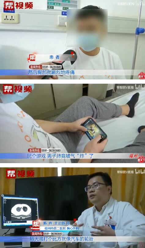 10月28日据媒体报道,福州30岁男子小陈(化名)平时爱玩手游,22日晚连续玩了4个小时皆为败绩,一怒之下把手机都摔了。但没过多久就开始出现胸闷、呼吸困难等症状,后来又出现胸部刺痛,前往医院后被确诊为“自发性肺气胸”。由于就诊及时,目前小陈已经转危为安。