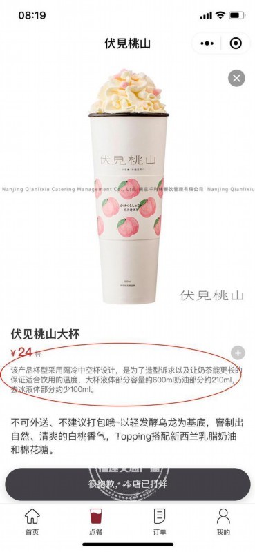 对此,“伏见桃山”奶茶店的负责人表示,已经对杯子的造型和容量进行了公示。