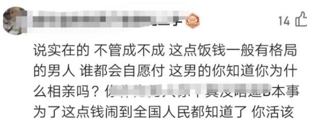 原标题:【翻车现场】男子相亲坚持AA拒付203元饭钱 网友:凭实力单身活该