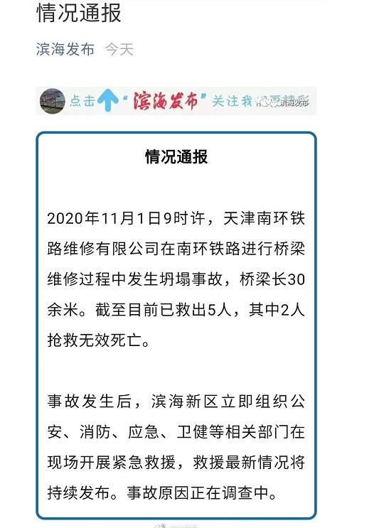 情况通报发布!天津一桥梁坍塌致2人死亡