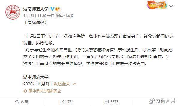 婷婷离世后,随着此事的曝光,大家对于此事给予了高度关注,也希望能够得到一个公平公正的调查结果。随着舆论的不断发酵,湖南师范大学官方微博发布了情况通报,确认婷婷的离世排除他杀,目前正在配合公安机关以及家属处理相关事宜。