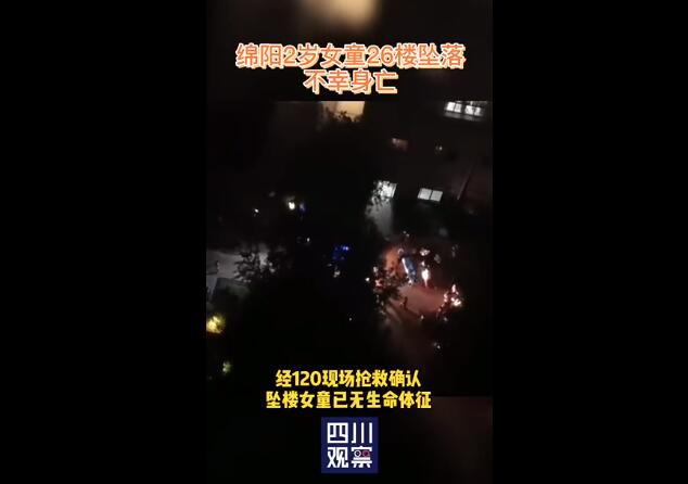 据四川省绵阳市公安局涪城区分局官方微博消息:11月11日18时许,辖区恒大翡翠华庭小区一名2岁女童从26楼家中阳台处坠楼,不幸身亡。