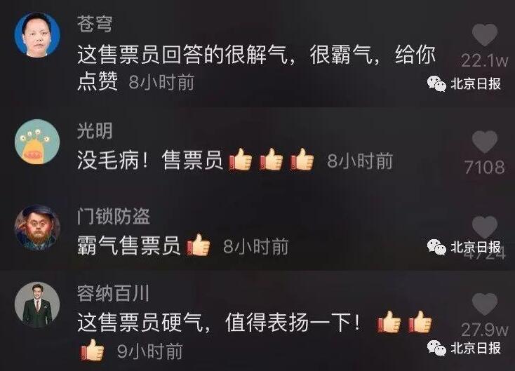 不少网友为售票员的回应点赞: