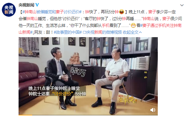 原标题:被甜到!钟南山被催睡觉和妻子讨价还价:再玩5分钟
