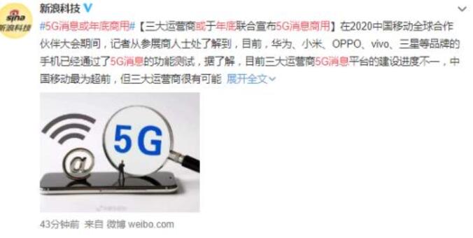 uo;5G消息或年底商用 ”的报道在网上的热度非常高,据媒体报道,目前三大运营商5G消息平台的建设进度不一,或于年底联合宣布5G消息商用。
