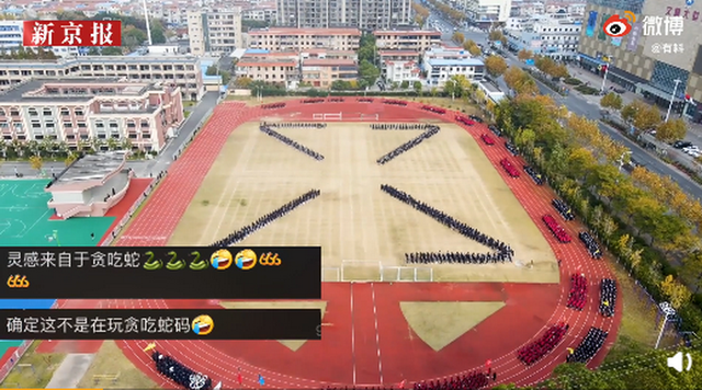 脑洞大开!近2500名中学生贪吃蛇式跑操 效果果然够震撼