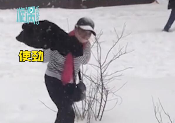 什么操作?东北大妈用雪洗貂皮大衣,传说中的干洗?