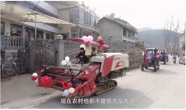 冲上热搜!返乡大学生新娘用插秧机当婚车