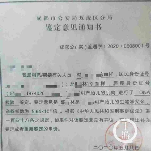 ▲鉴定书证实,邱吉林是小小引产胎儿的父亲。图片来源/受访者提供