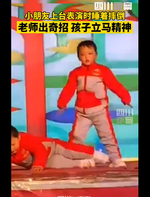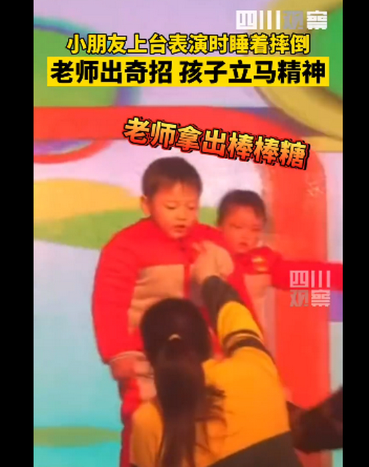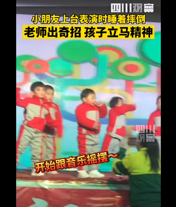 好可爱!小朋友舞台表演节目时睡着,老师一招让其摇摆